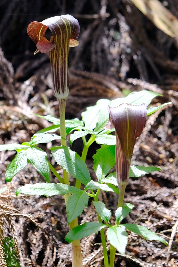 マムシグサが出始めている。この辺りでか細いゼンマイを見かけた