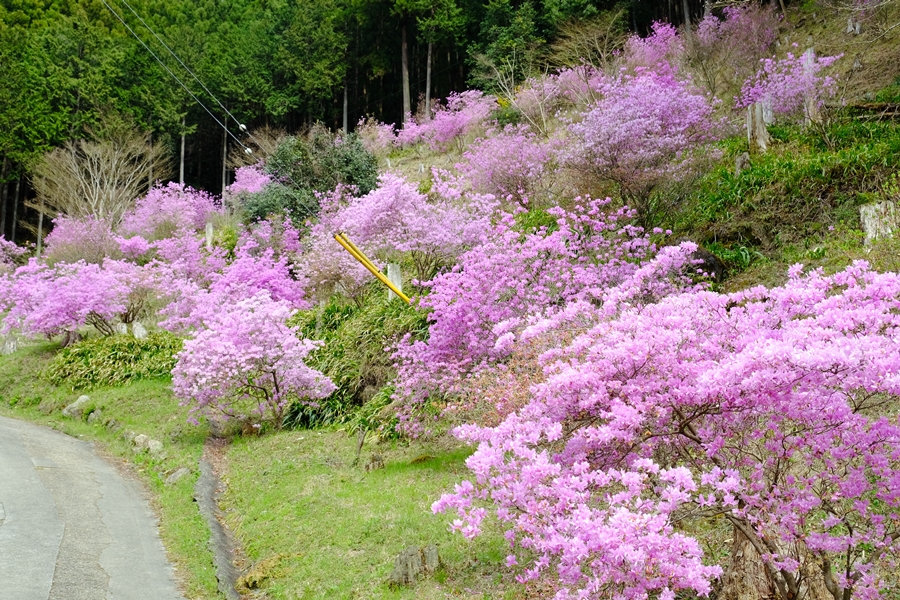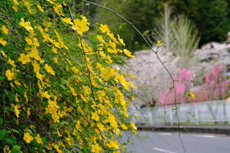 三滝とは逆の一本杉峠方面に向かう。桜と花桃が鮮やかだ。