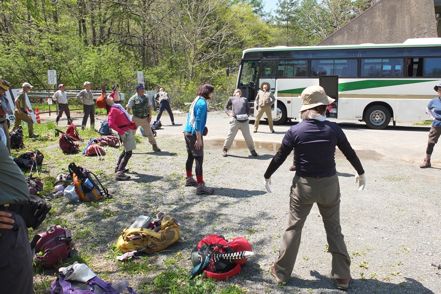 いつものようにラジオ体操を入念に、今回はYさんの掛け声で