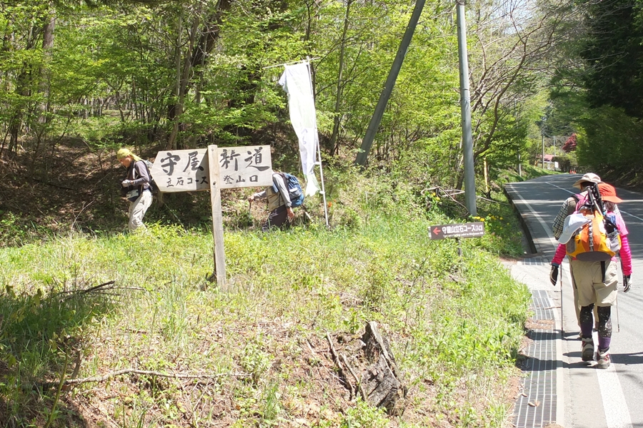 舗装された道の両脇には別荘が崩れそうにありますが、そこをすぎると登山道入口