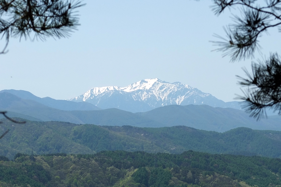 立石の脇から雪山が見えました。