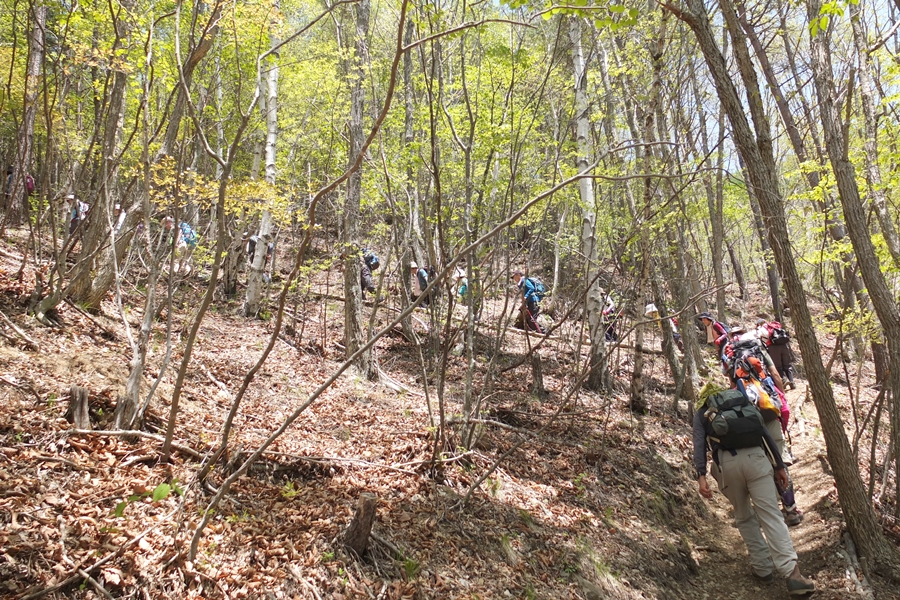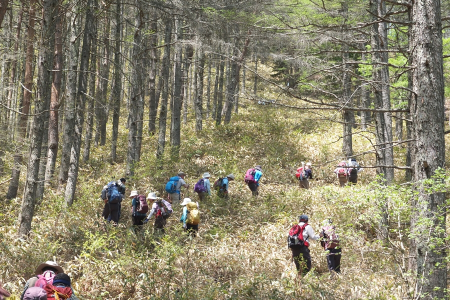 緩やかな傾斜の林間を進みます。
