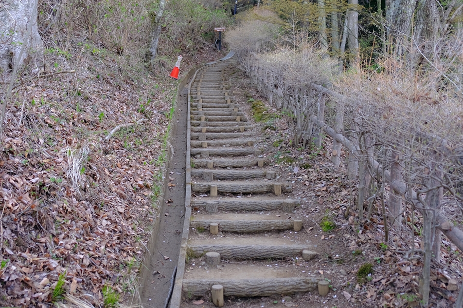 あじさい公園と名がついた場所は階段がずっと続く。脇にはドウダンの植え込み