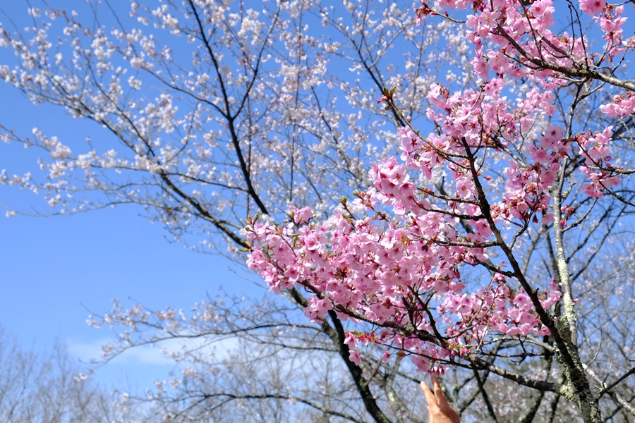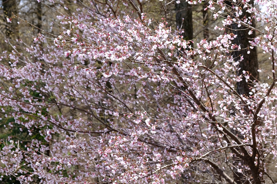 御殿に11時50分到着、ここのフジザクラの下で昼食にした。