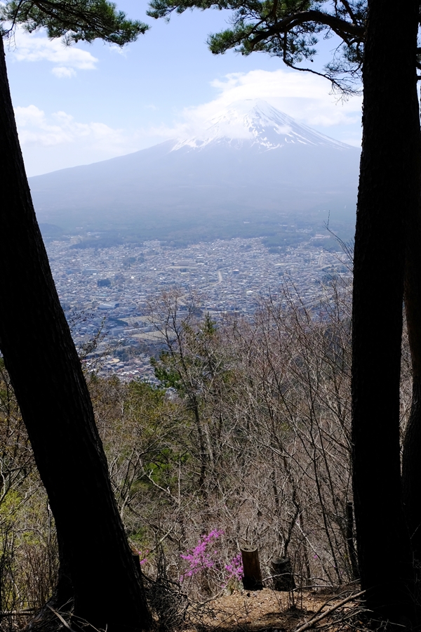 結果、曇りで雨も覚悟の天気が晴天に変わり、富士山もばっちり見えたし登山道脇にはフジザクラがずっと咲いている。