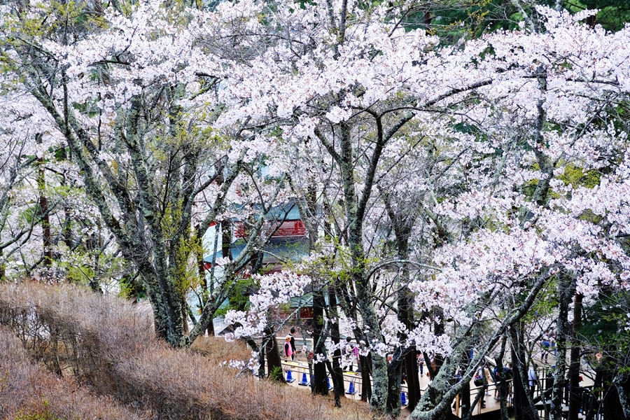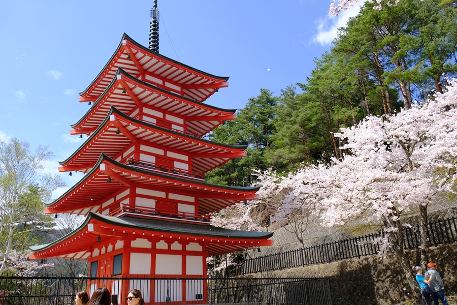 裏側から行ってみた新倉富士浅間神社は相変わらず外国人でいっぱいだったが、ソメイヨシノは満開で見応えあり。