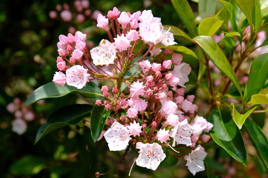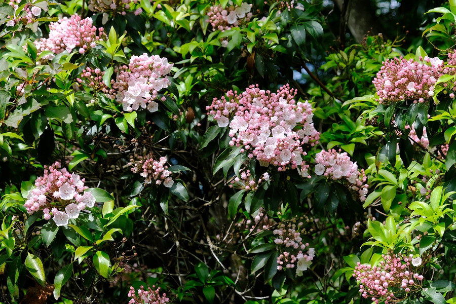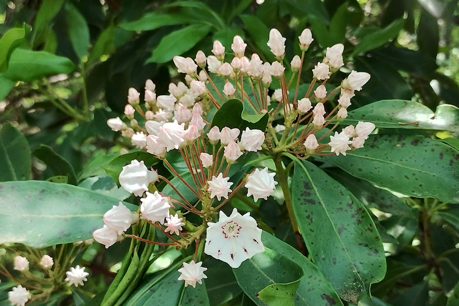 頂上手前から咲き始めのカルミアがお出迎えしてくれた