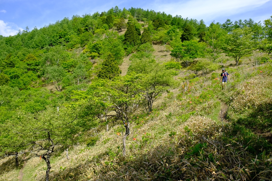 急な坂を下っていると、後ろからトレランの人に追い越される