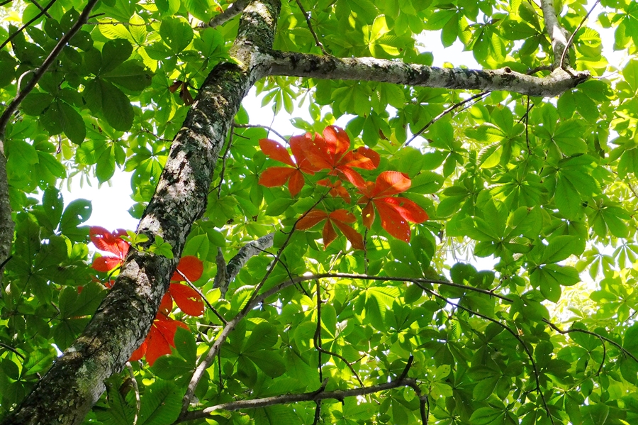 更にトチノ木の大きな木もあり、一部葉が赤かった
