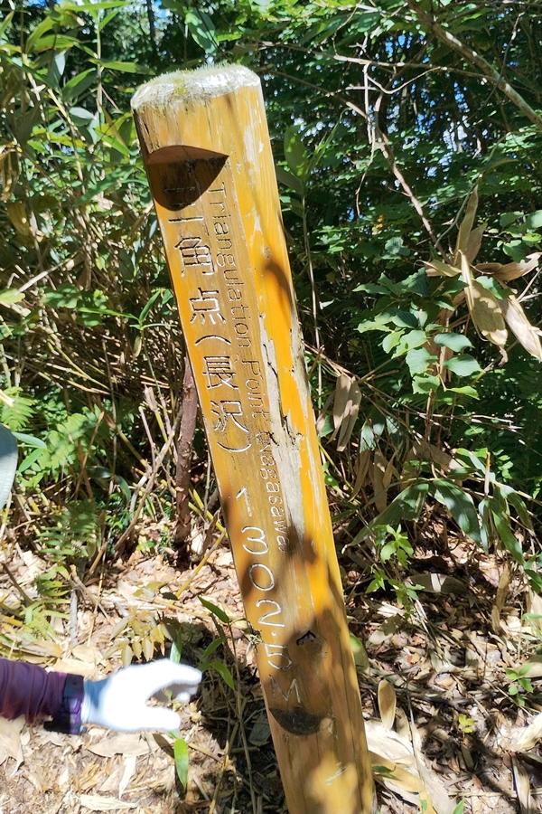 本日の最高点の三角点1,302.5mに到着。意外と登りがありきつい
