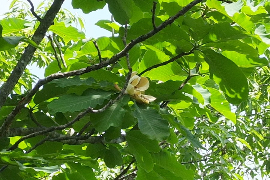 ここで昼食後近くに朴の木の花を発見。珍しいものを見つけた。