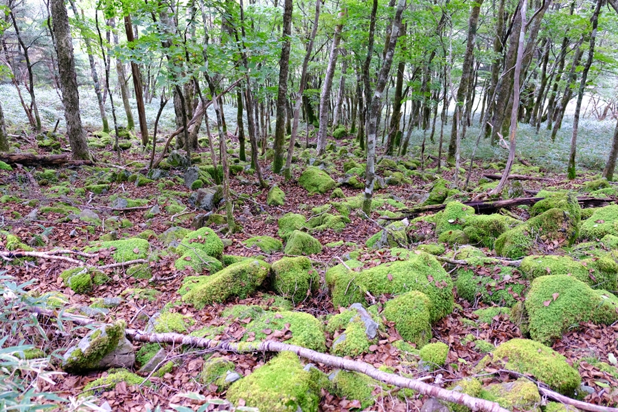 涼しい風が吹き抜ける苔むした石がいっぱい