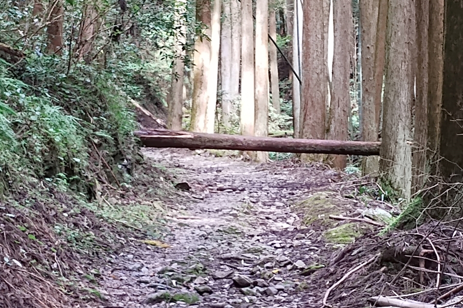 一本は通行止めで、広くて歩きやすいはずの道も倒木があちこちにあり通りにくい