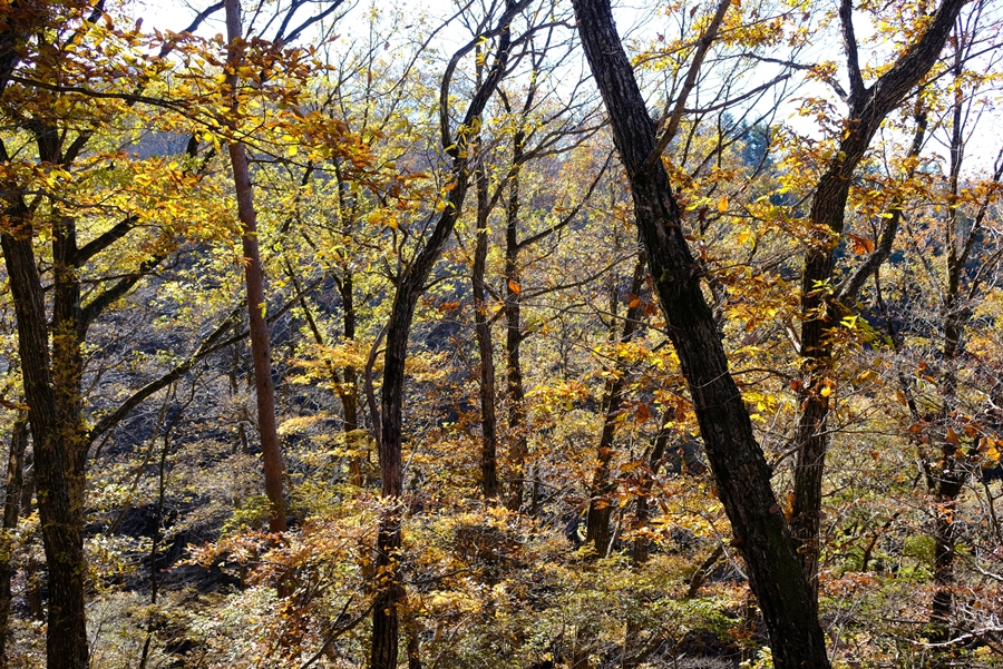 下のほうは所々に黄葉が陽の光を透かして輝いて見える