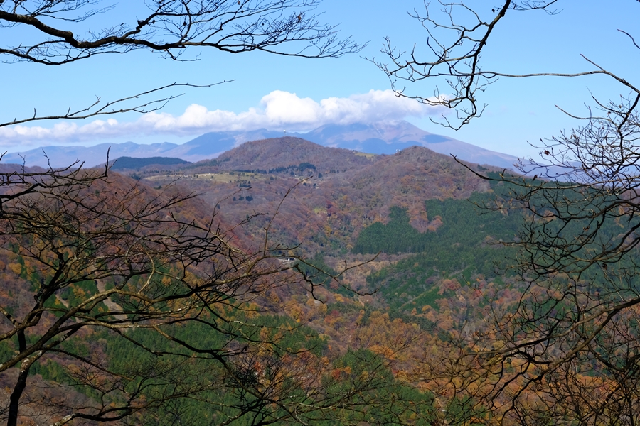 木々の間から浅間山と麓の山の紅葉がちらほら