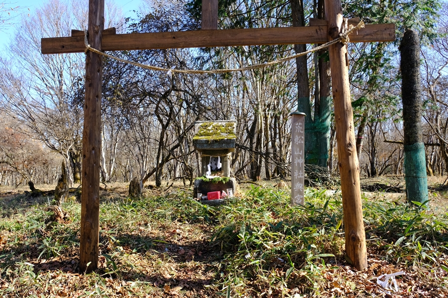 昼食後経塚山方面に甲板上の平地を進む。途中の荒船神社奥社に挨拶