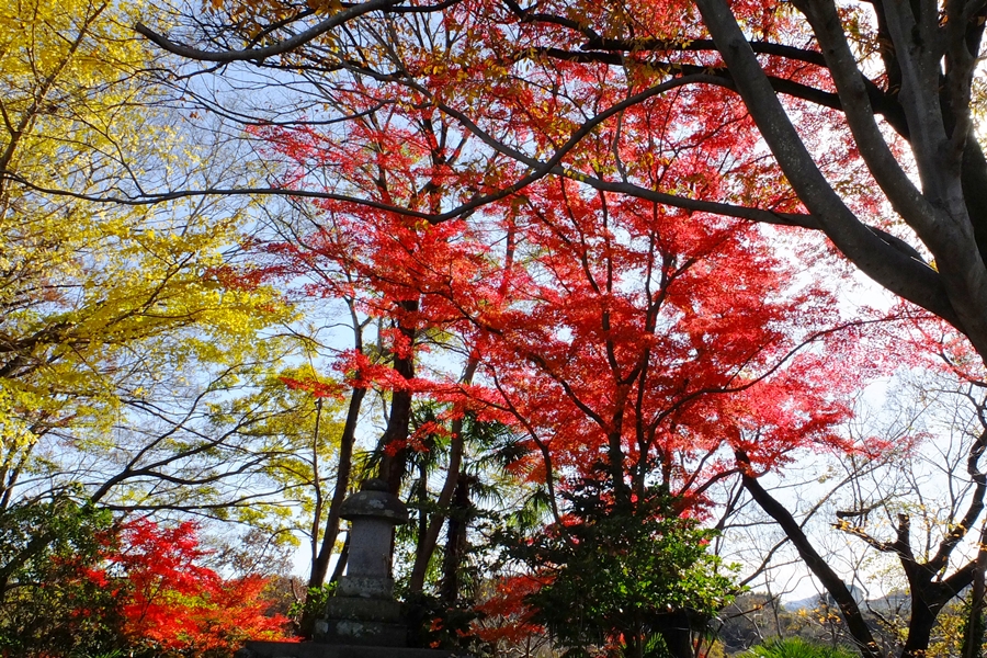 ここの境内の紅葉や手前のミカン畑などが綺麗