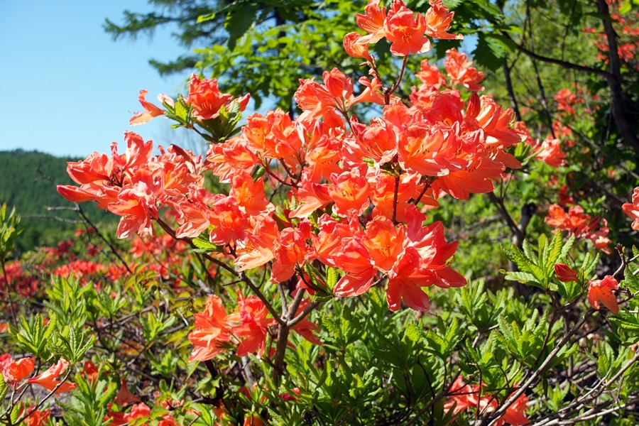 登山道の脇にはレンゲツツジがあちこちに咲いています。