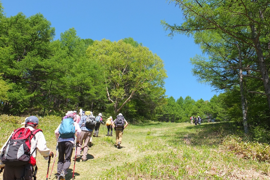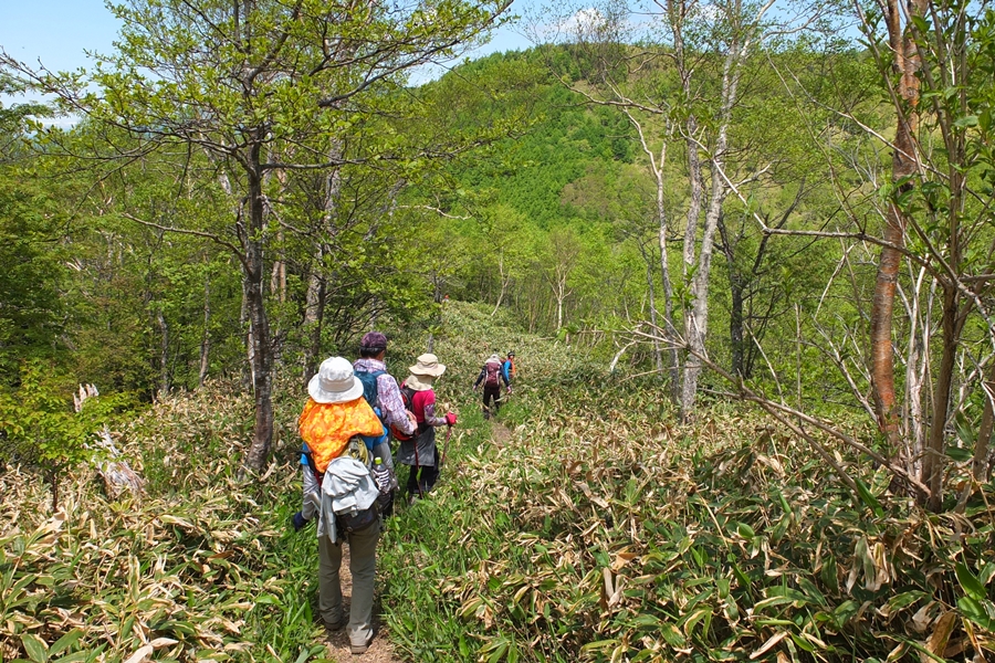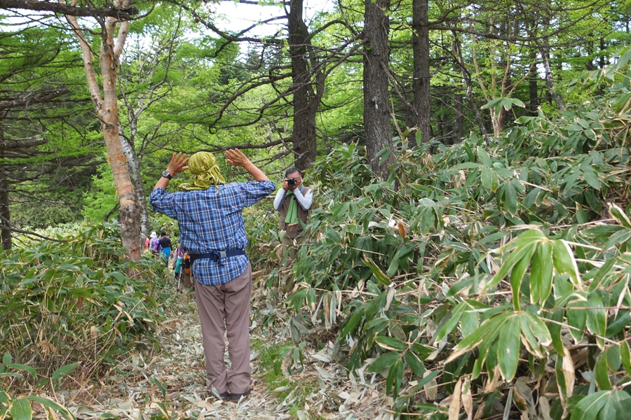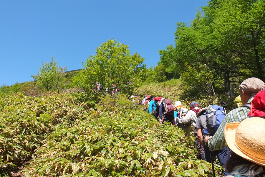 昼食もそこそこに、荷物を留守番に預けて角間山を往復します。(12時30分)