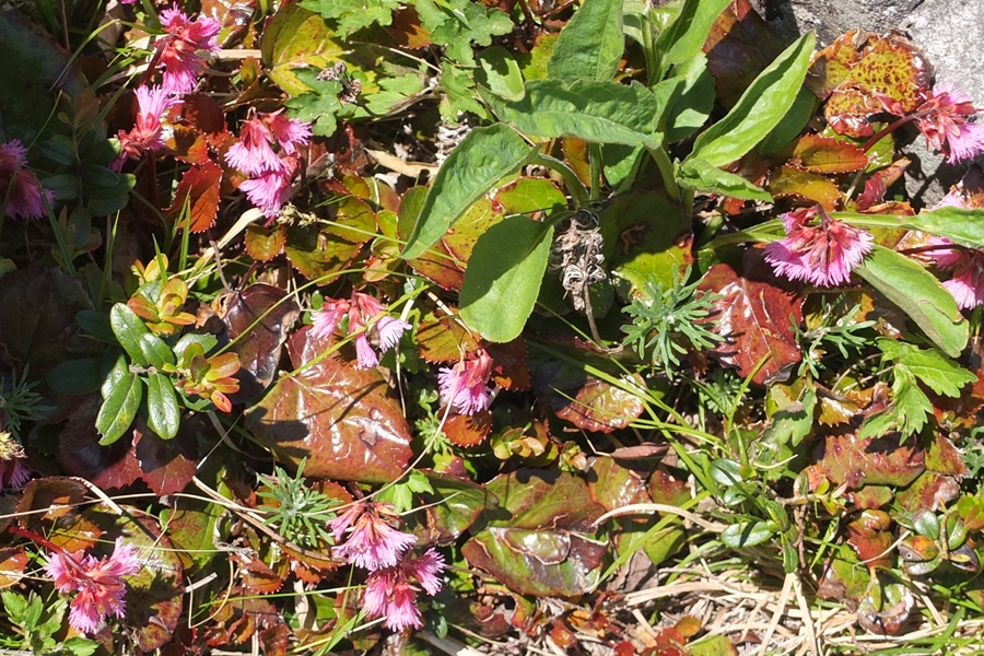 山頂付近の岩陰にもイワカガミの群生があちこちにありました。