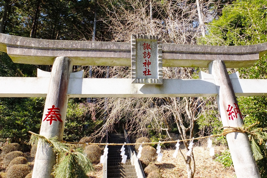 ここも結構な急登を登り、15分で諏訪神社に到着