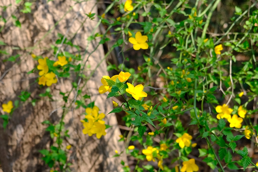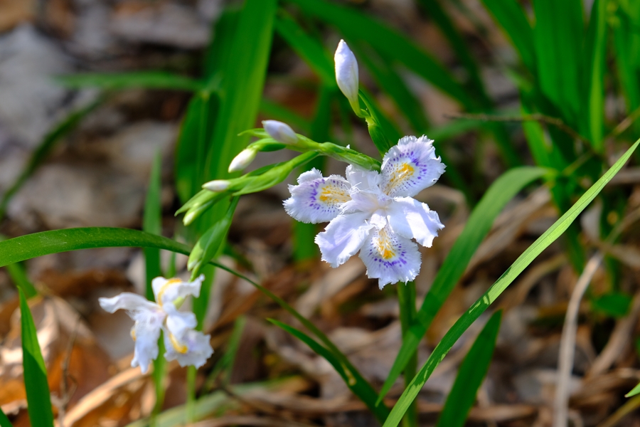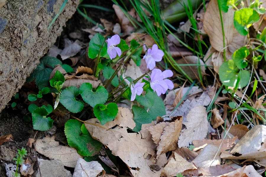 いきなりの急階段の道を登る。足元にタチツボスミレが彼方此方に