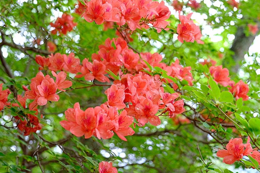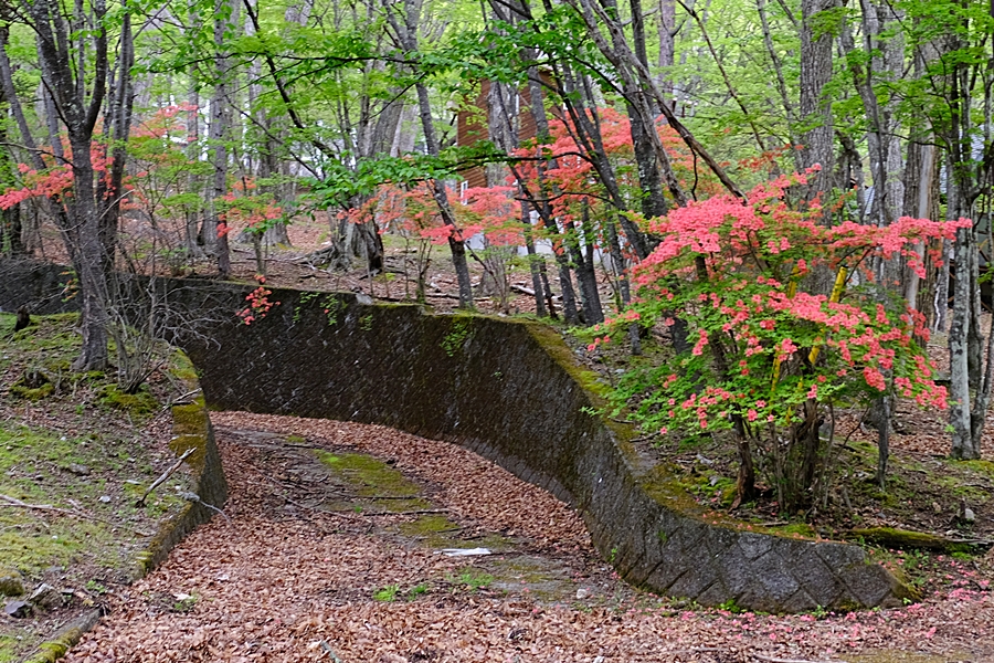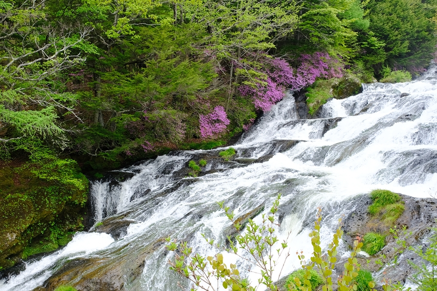 駐車場から竜頭の滝に向かう途中からヤマツツジがいい色だ