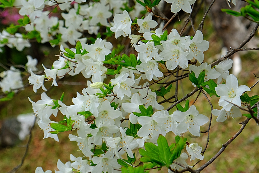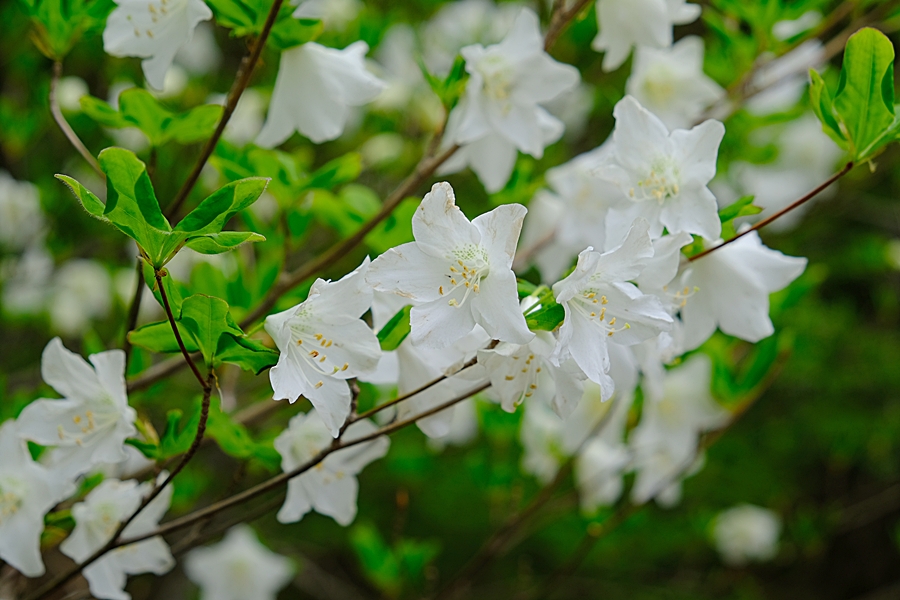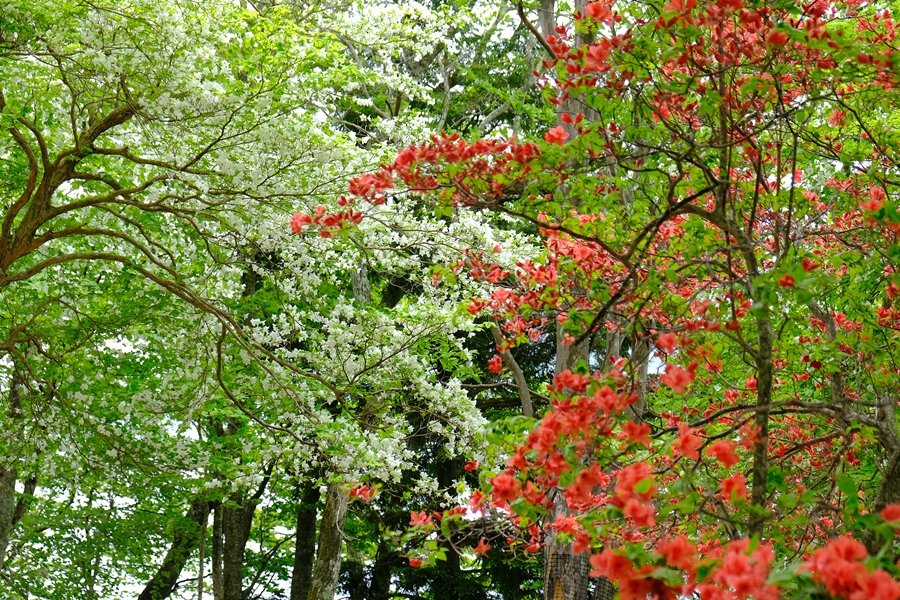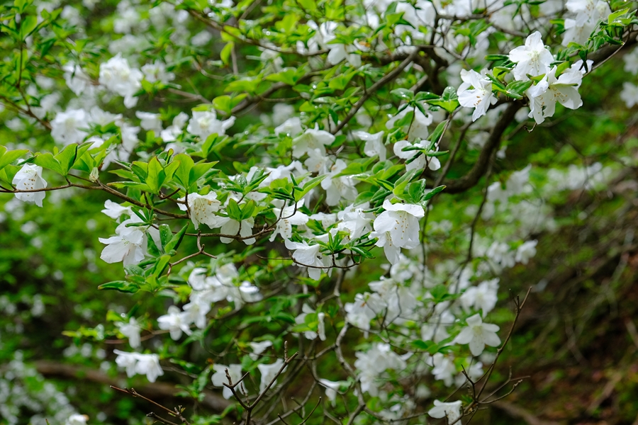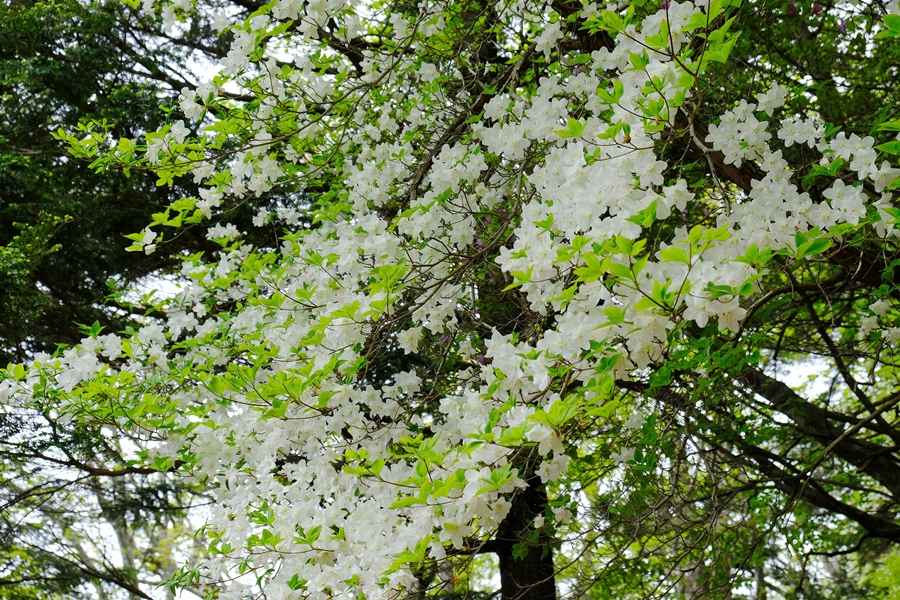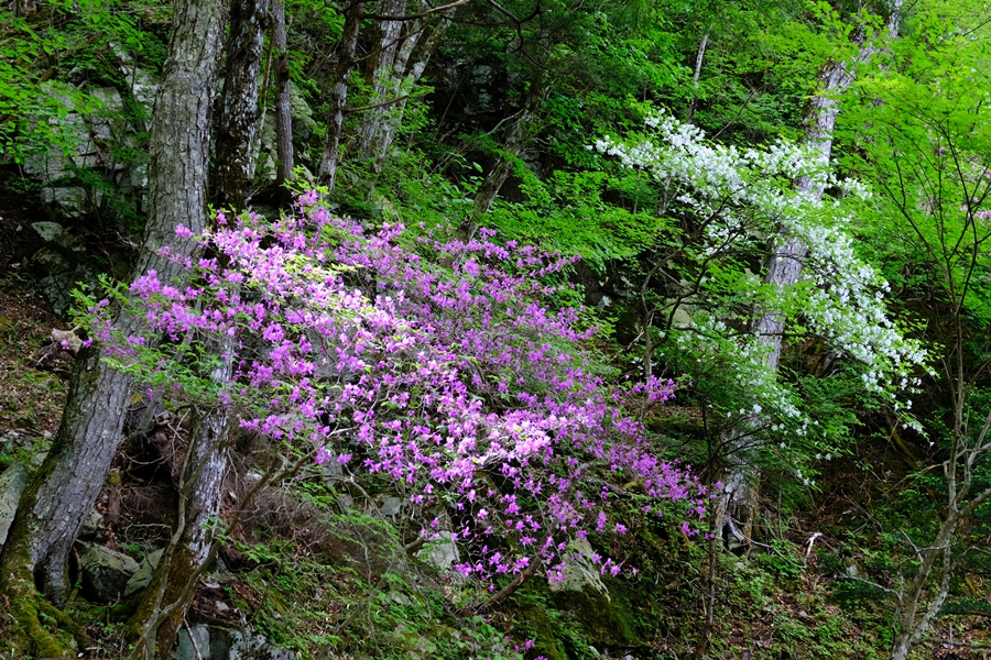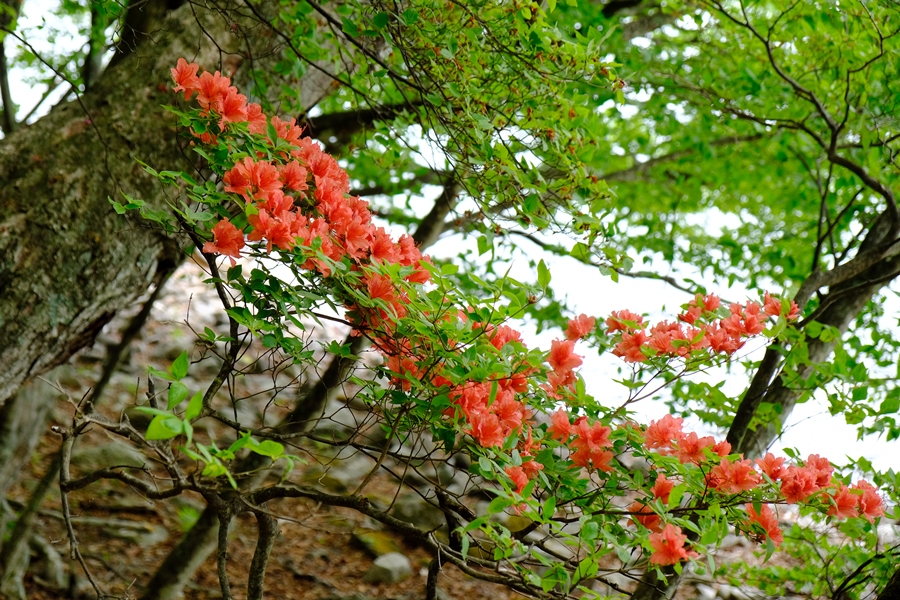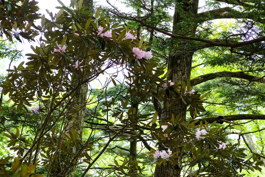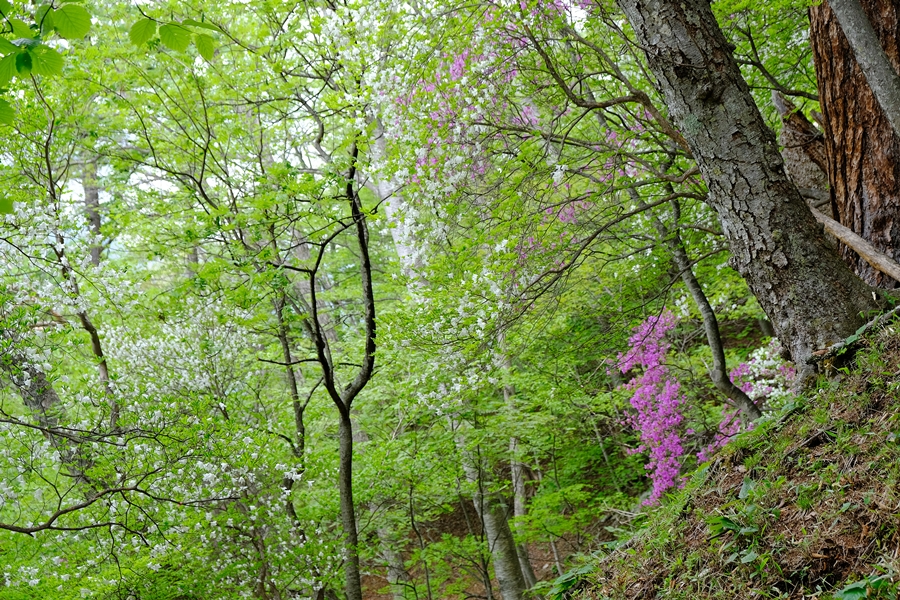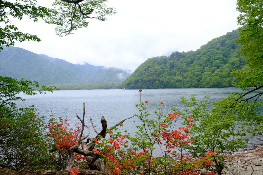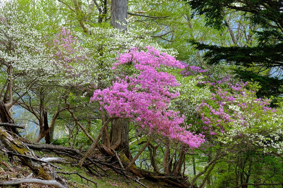 湖畔付近はヤマツツジが色濃く咲いており、進むにつれてミツバツツジ、そしてシロヤシオ、更にアズマシャクナゲまで満開で迎えてくれた。大当たりの時期に行く事が出来て大満足の一日だった。