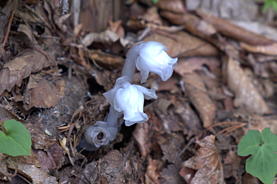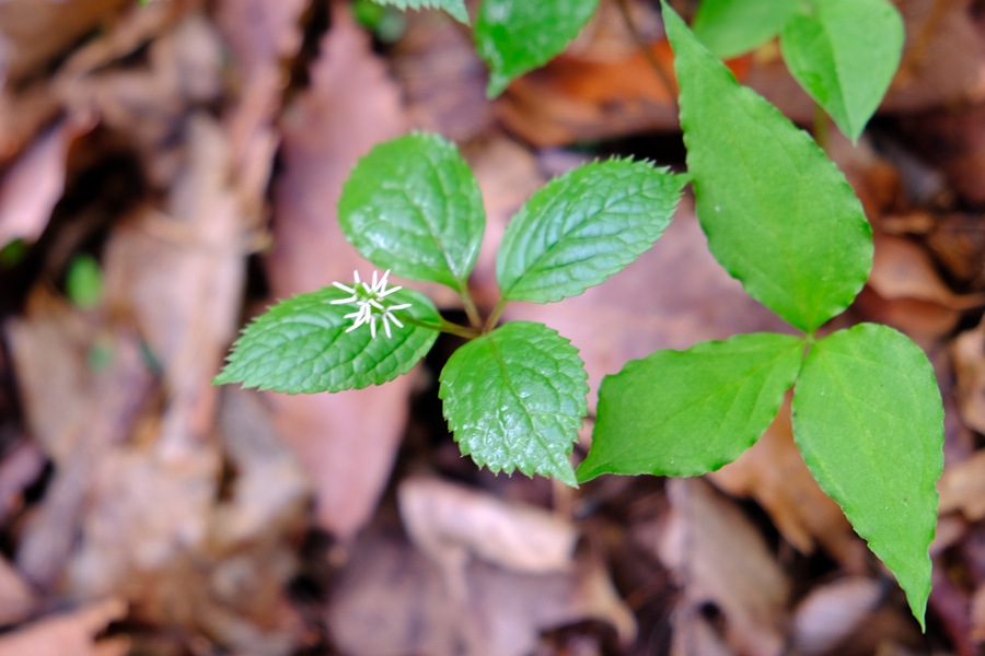 ワチガイソウの小さな花もある。マイヅルソウは葉のみだった