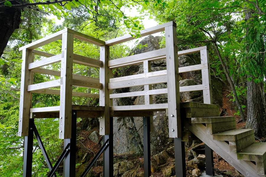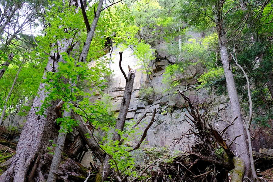 急な崖にシロヤシロ、足元注意でも見上げてしまう