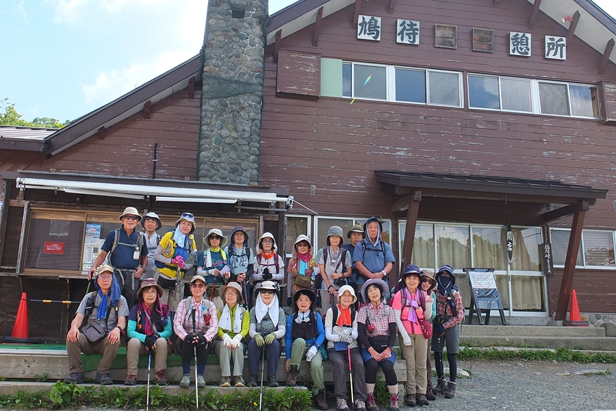 閉店した鳩町休憩所前で元気なうちに記念撮影をする。