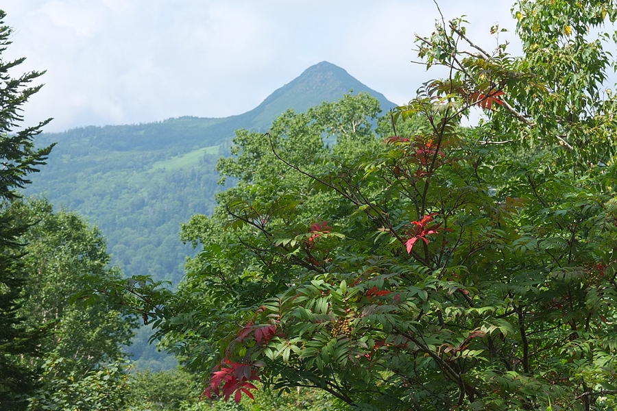 ナナカマドの先端に実が出来ていて、葉が色付き始めていた