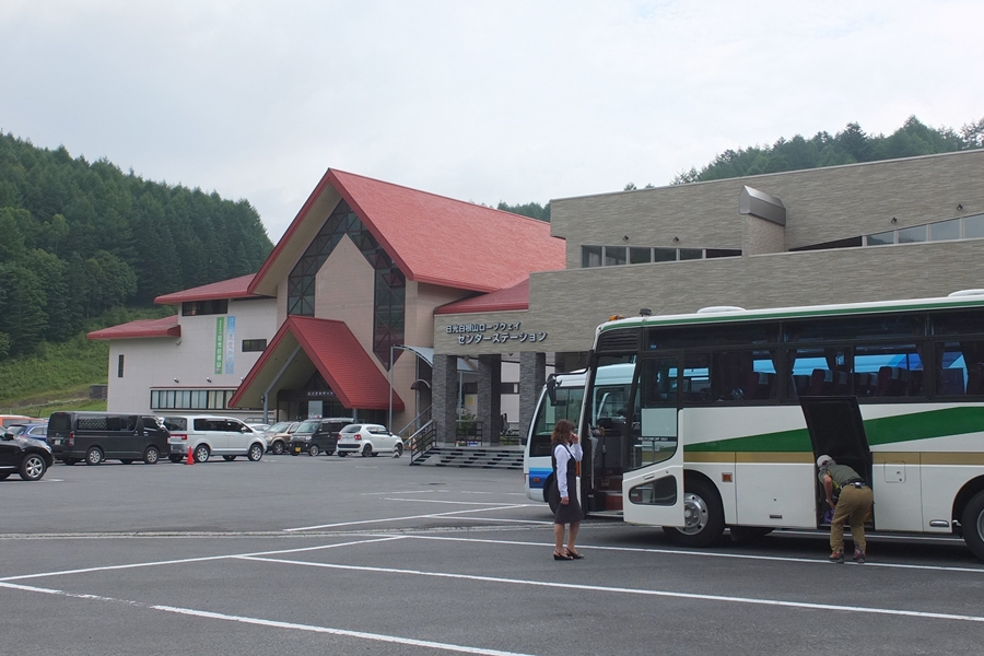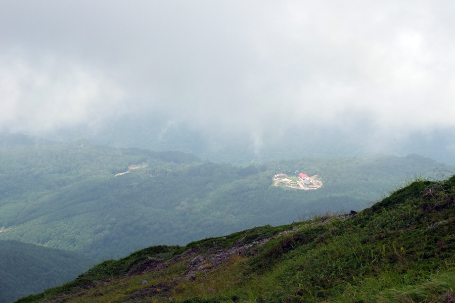 雲が切れたところで丸沼高原のロープウェイ乗り場の建物が見えた。