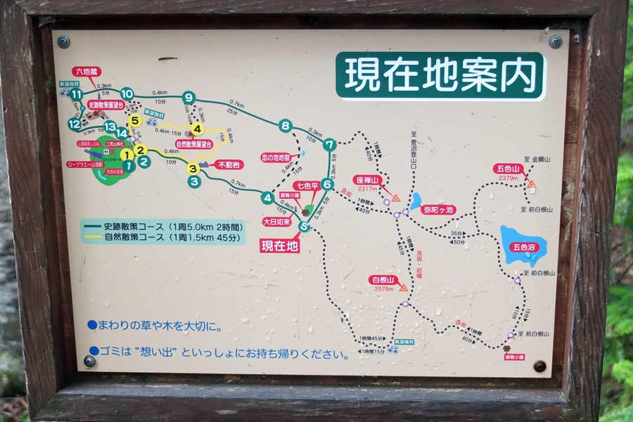 予定コースは丸沼高原ロープウェイで山頂駅~七色平分岐~樹林コースで白根山頂~弥陀ヶ池~座禅山コース~七色平北分岐~山頂駅の予定です。