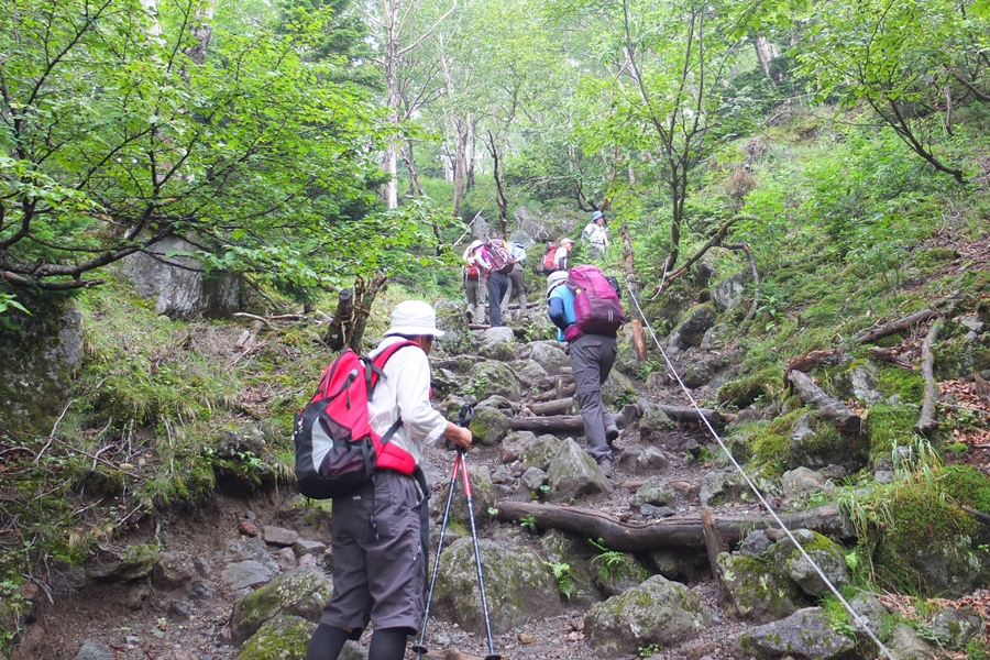 途中で合羽を着なければならないほどの雨となり、下山を急ぐ(カメラもザックに仕舞う)