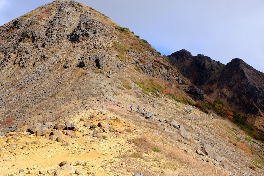 剣ヶ峰のトラバース道を朝日岳に向かう人達