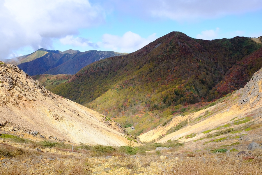 朝日岳方面の荒々しい景色
