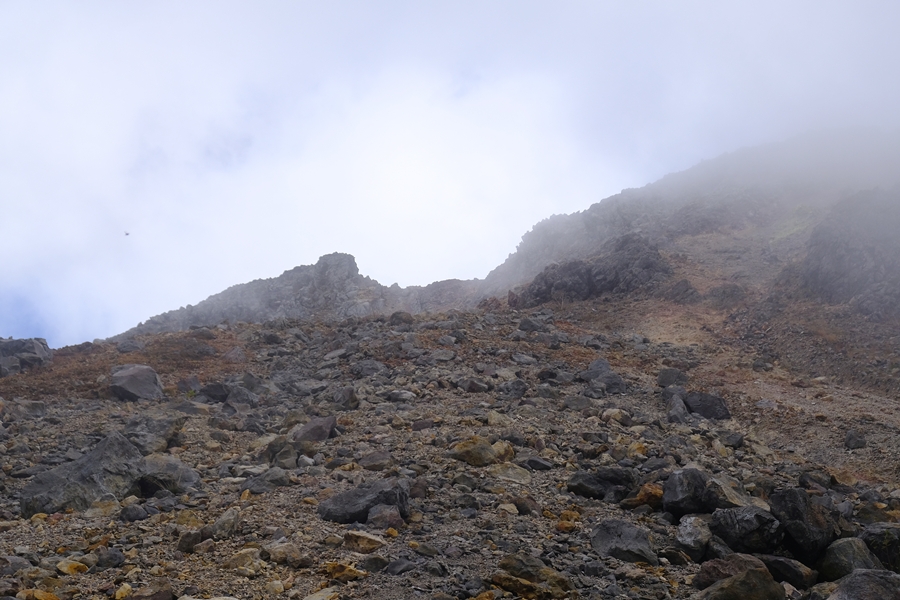 茶臼岳は時々ガスに隠れてしまう