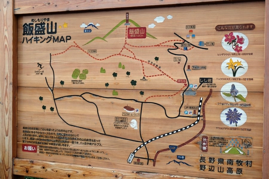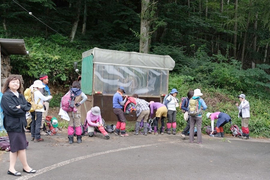 途中のパーキングで臨時ミーティングを開き、雨で濡れた岩山は大変危険と判断して短時間で登れる清里の飯盛山に変更しようとなりました。