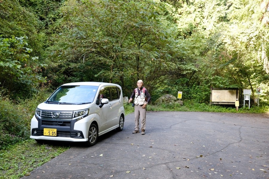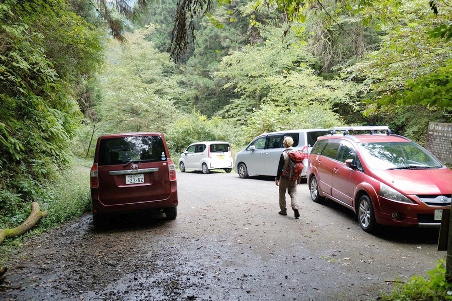 7時40分、大岳鍾乳洞の先の行き止まりの駐車スペースに車を止める。