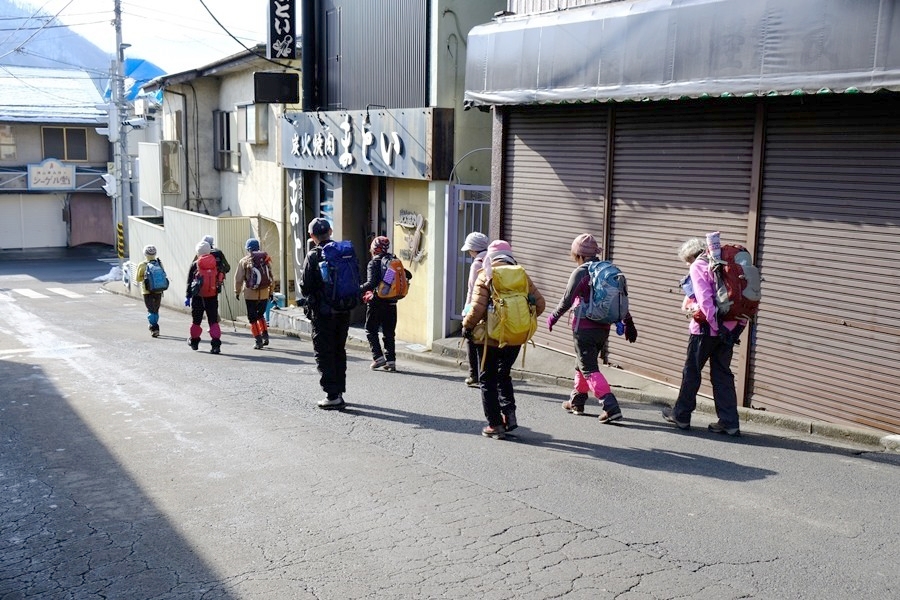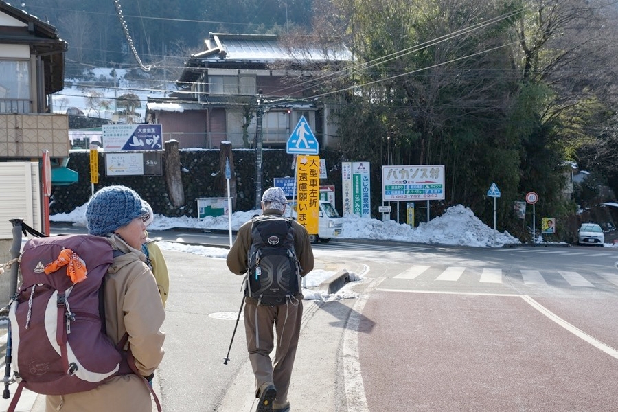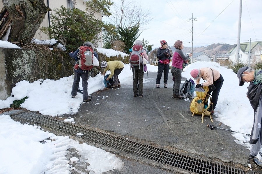 舗装道路に出たので軽アイゼンを外す