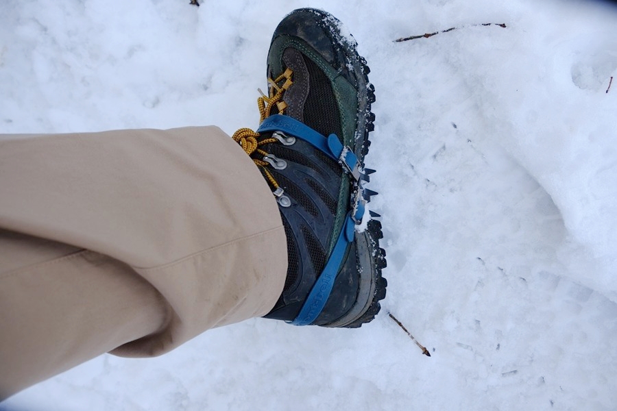 だが、北斜面ではしっかり雪が残っており、軽アイゼン初装着で歩くことになった。