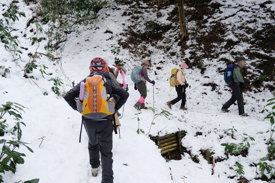 しかし、結構な雪なので念のため軽アイゼンを全員装着