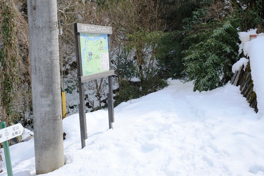 登山道出口手前最後の雪道