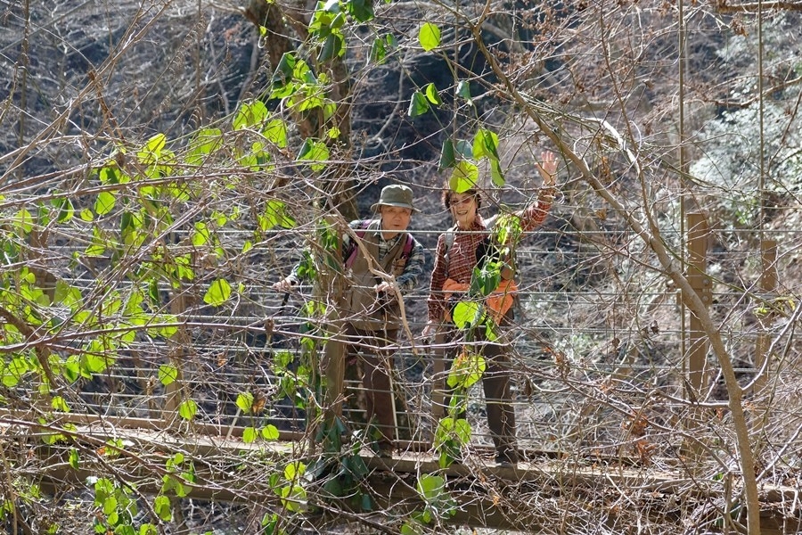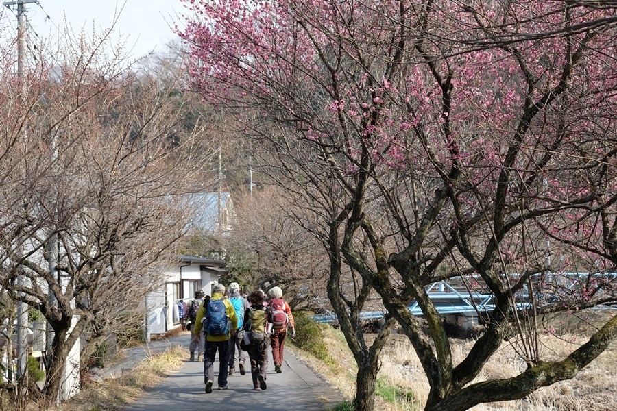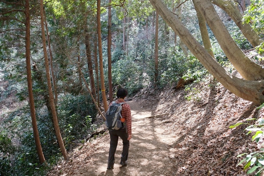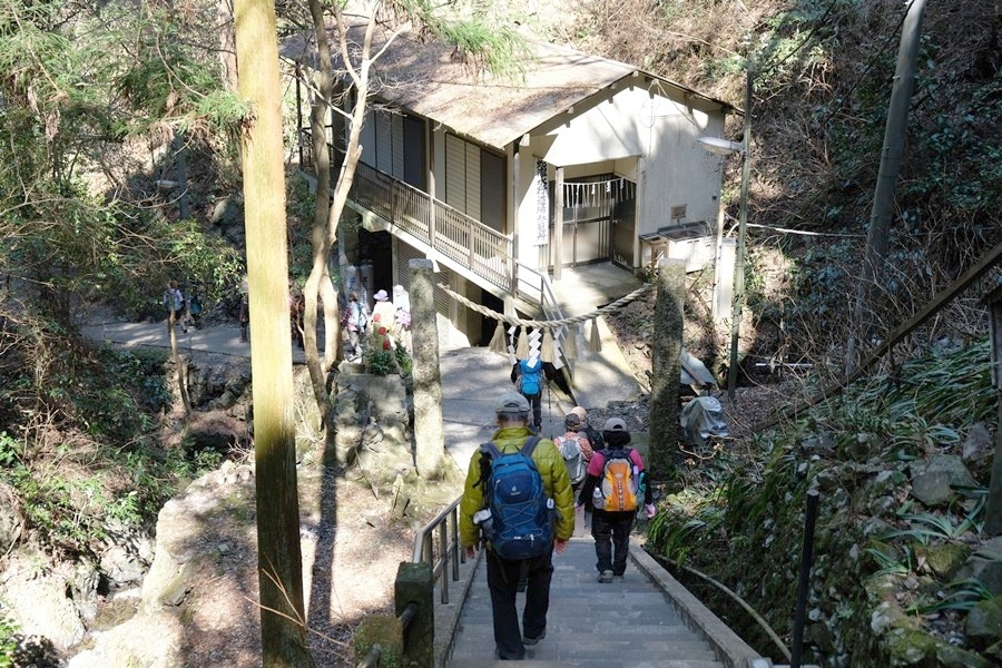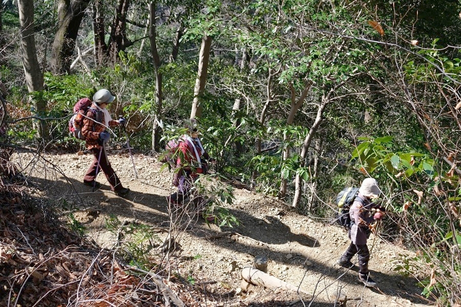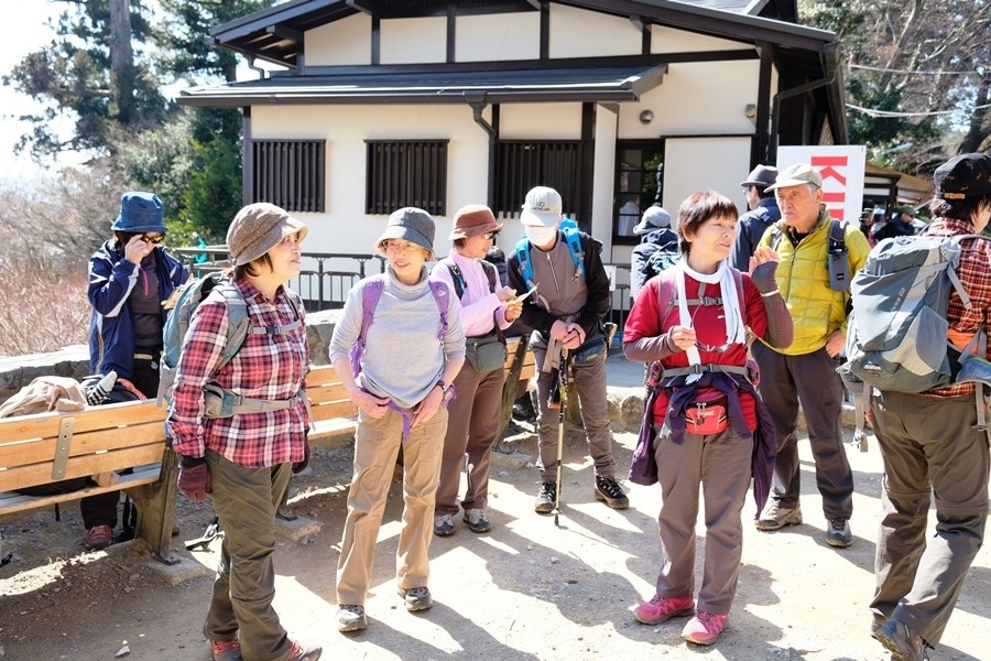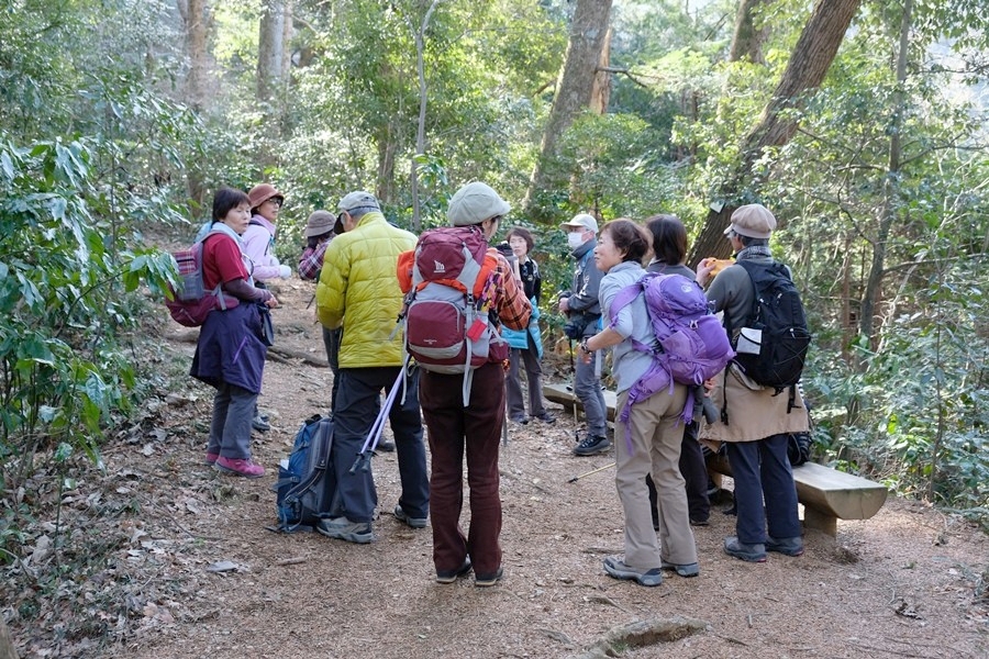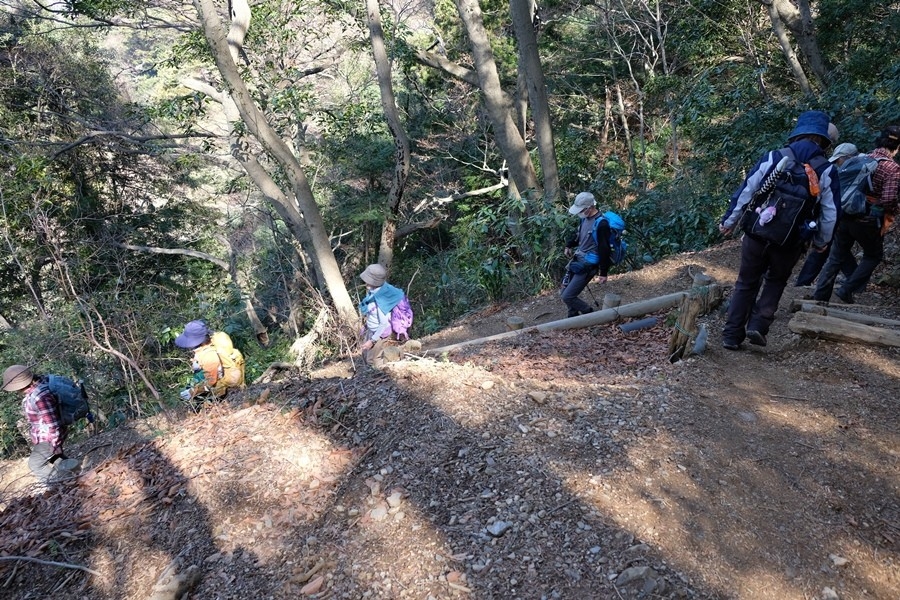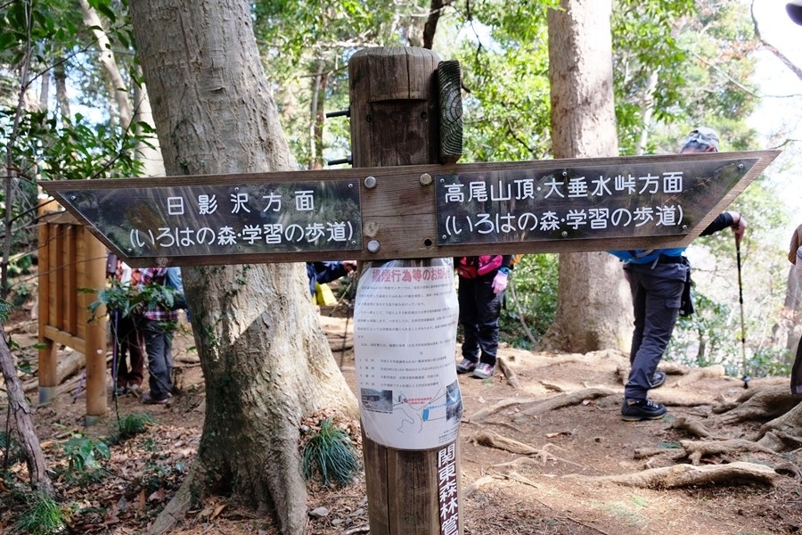 コースは高尾駅→バス→日影下車、日影沢キャンプ場→いろはの森コース→4号路→霞台園地(昼食)→蛇滝コース→蛇滝→天神梅林→川沿いの遊歩道→高尾駅