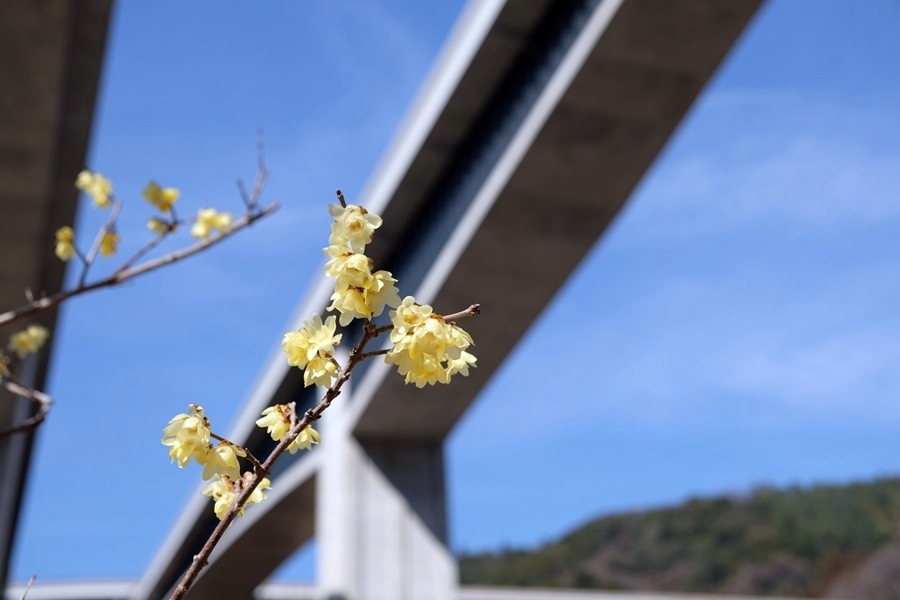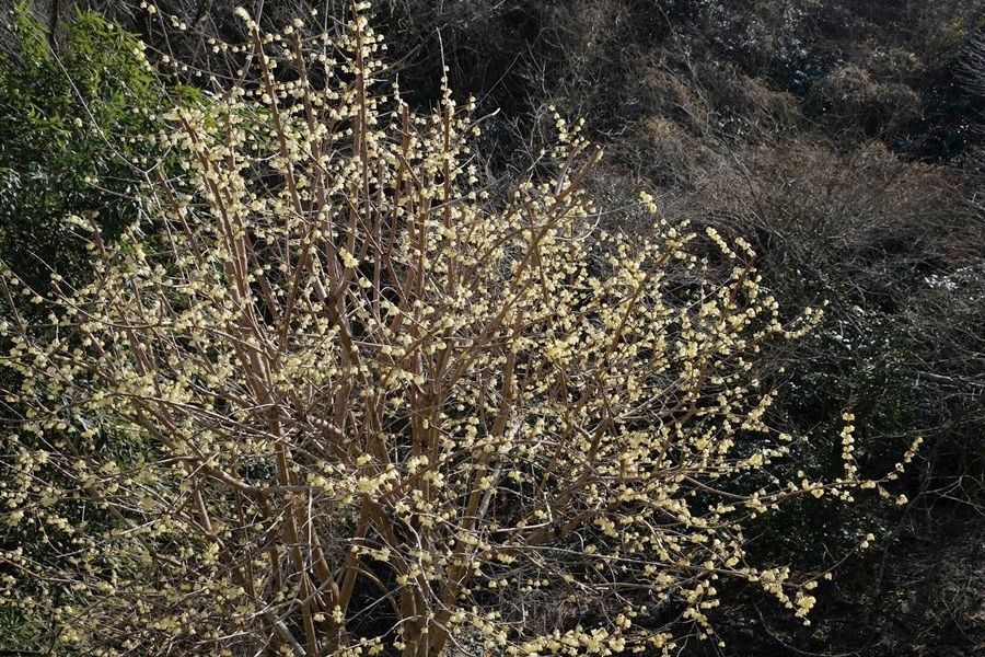 途中公園らしきところで蝋梅を発見(満開でした)上に見えるのは高速道路
