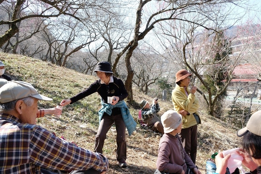 高尾山の北側の梅林で花見をしようと行ってきました。