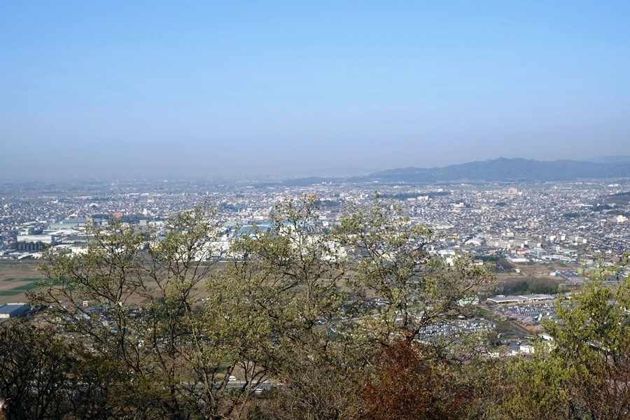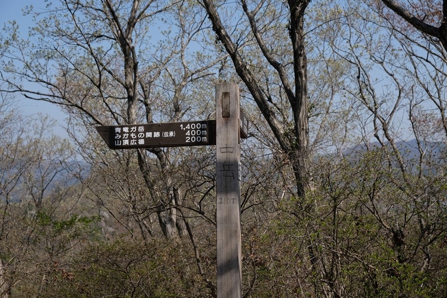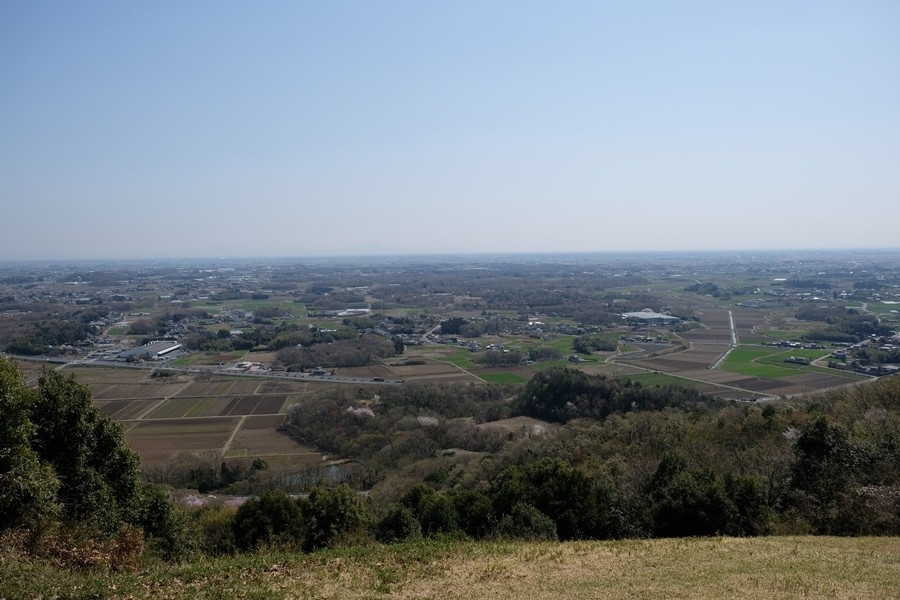 山頂からは西方向の視界が広がっている。霞んでいるので、見えるはずの日光連山確認できない。