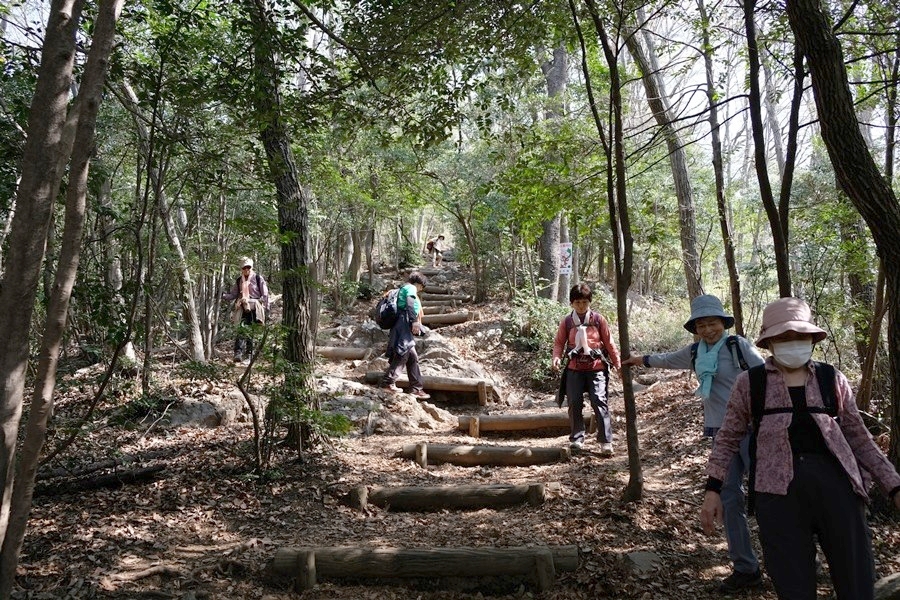湿生花園を過ぎると登りが始まる。公園全体に木の階段が多くて疲れる。
