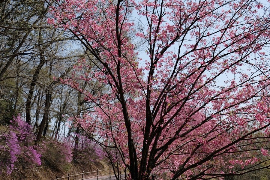 傾斜のきつい上り坂の途中にはヤマツツジが一株だけ満開